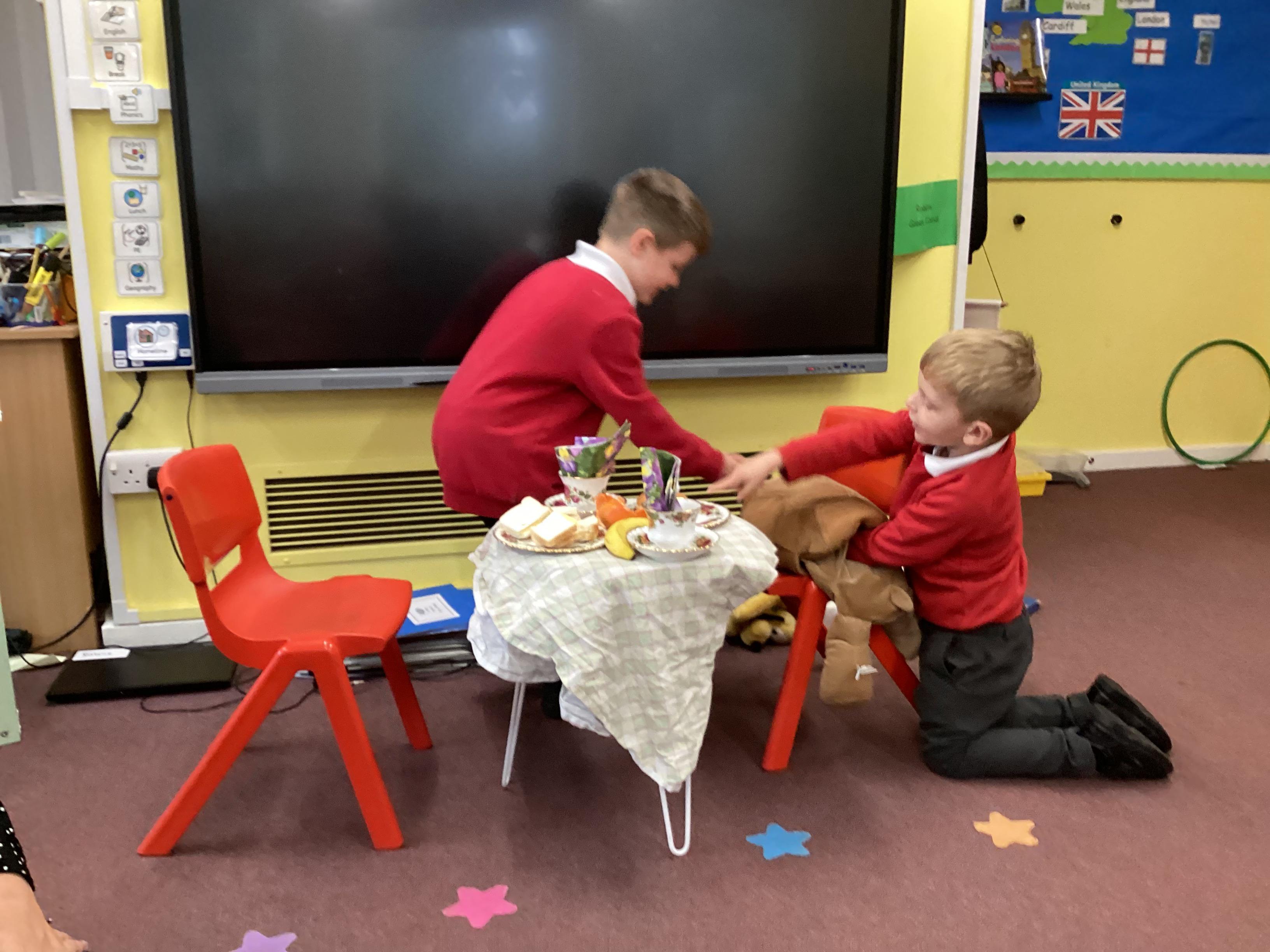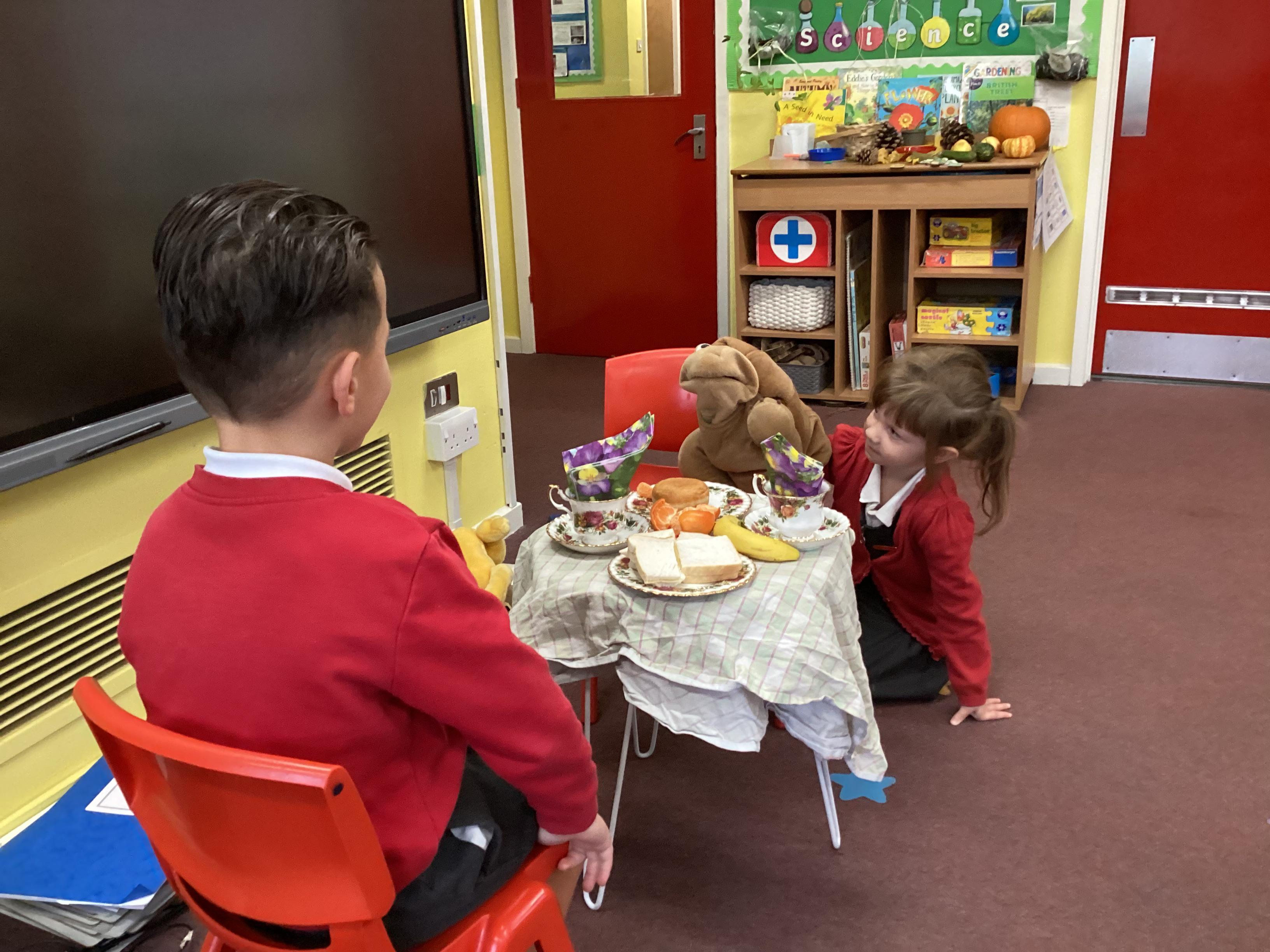 The children enjoyed acting out their own version of Tiger that came to Tea - the Tortoise that came to tea. This helped them to plan their writing and use their imaginations.