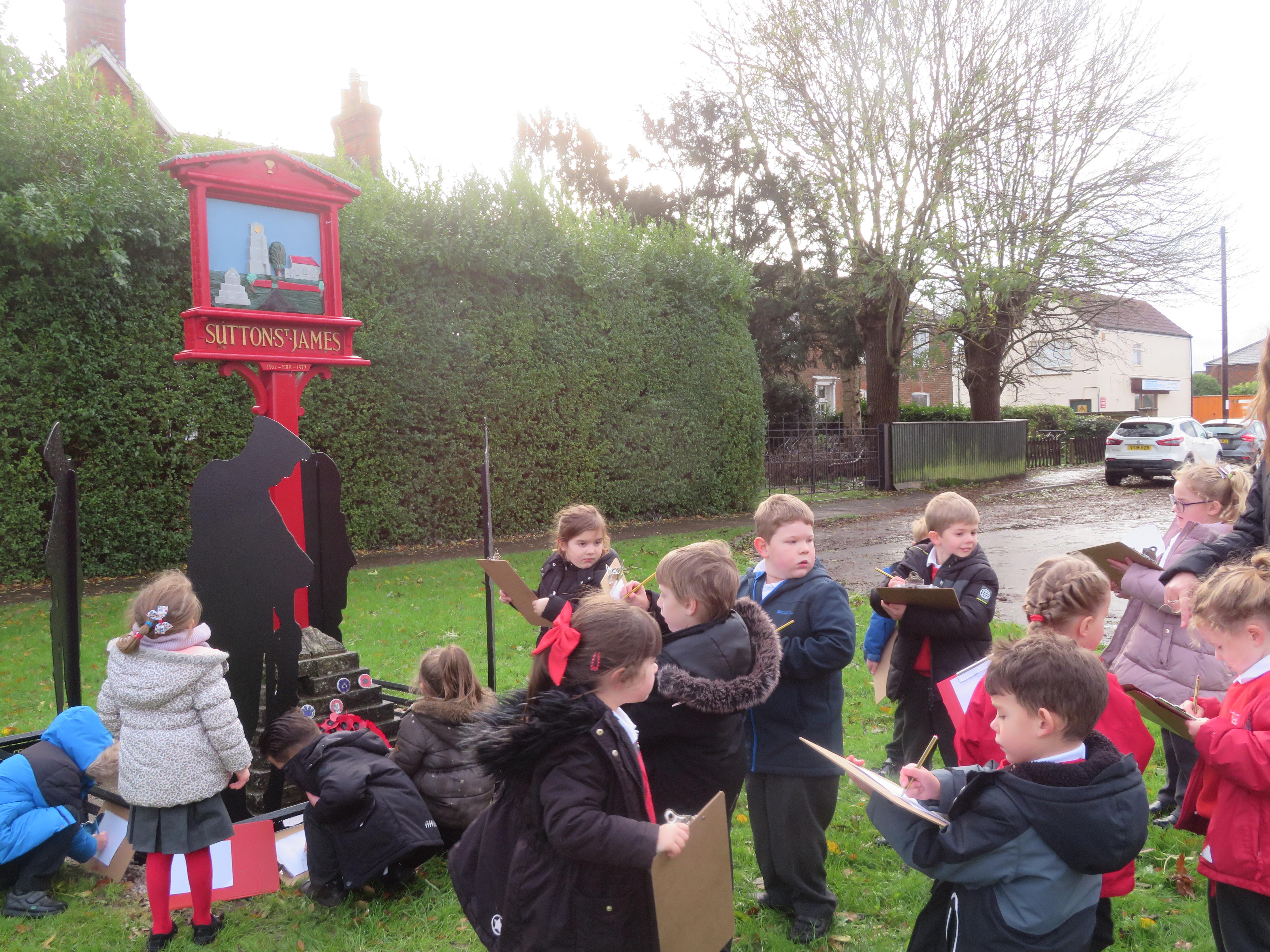 As part of History, we learnt about some of the history of our village. We began with a walk in the village and sketching the village sign.