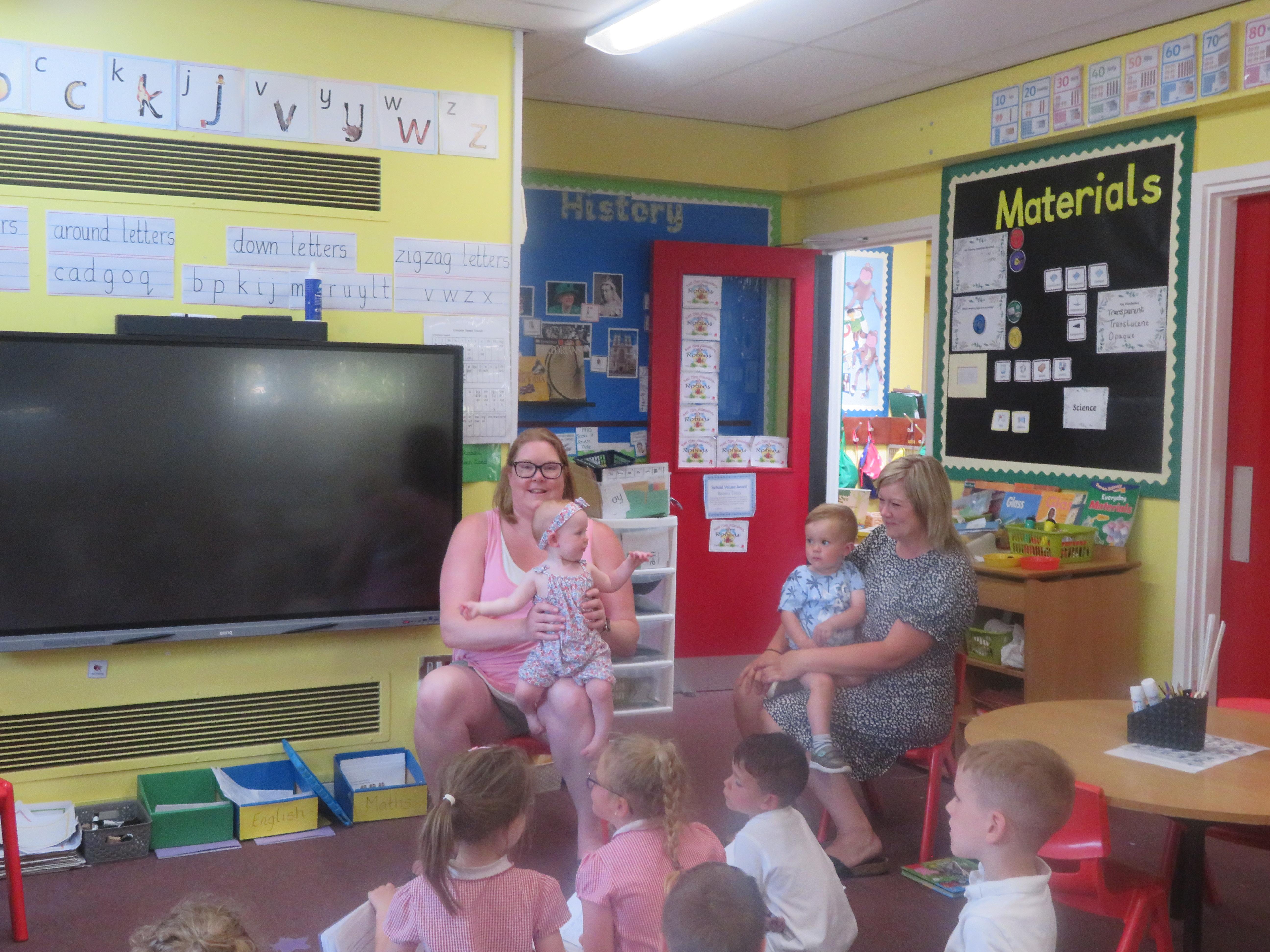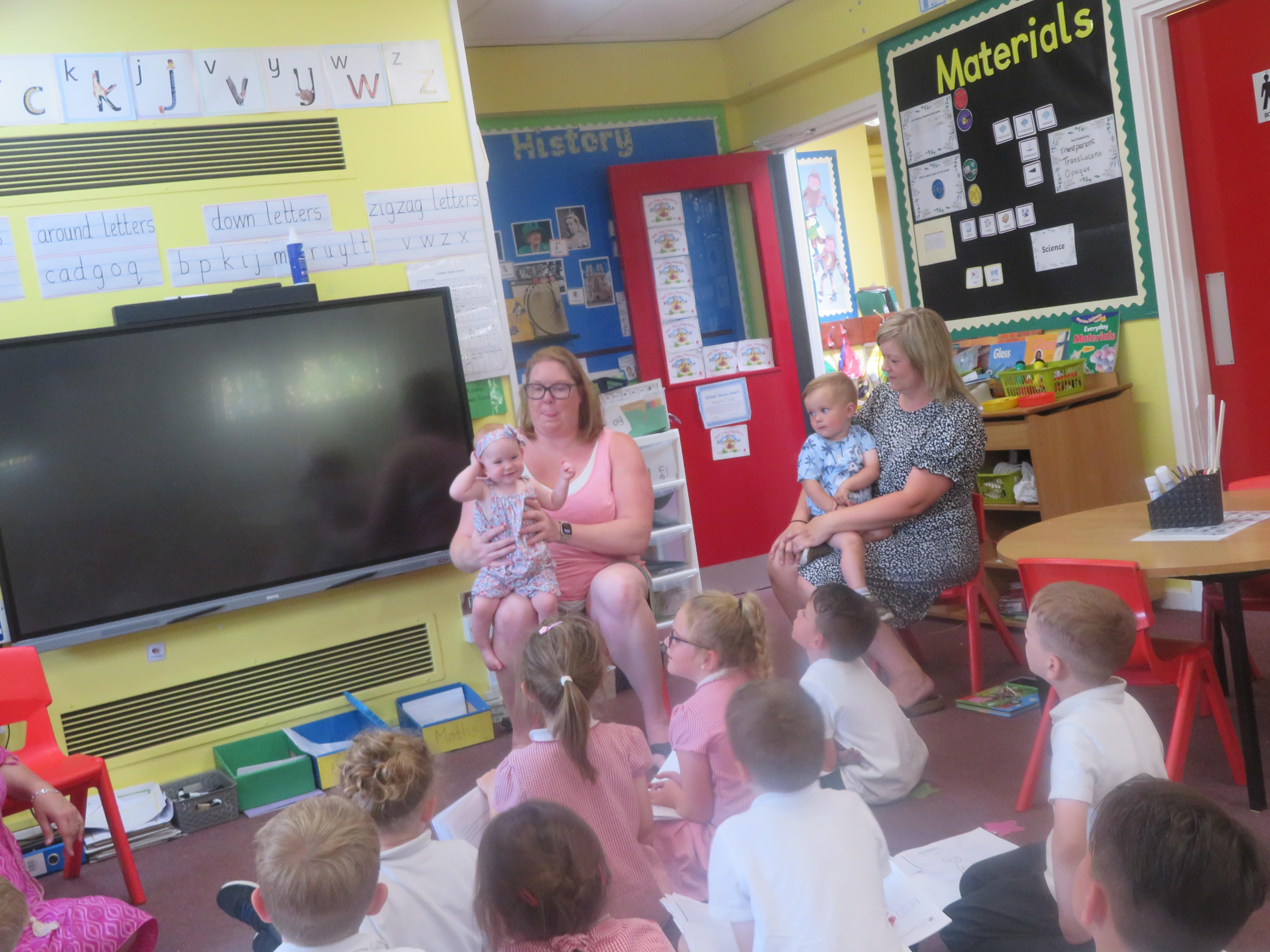 As part of PHSE we learnt all about how we change from babies to young children. We were lucky to have some visitors - Jennifer and Archie and we learnt all about what they can do and what they need help with.
